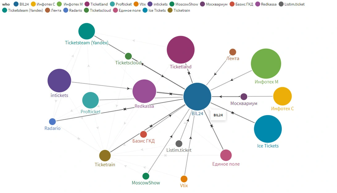 Другой важной задачей платформы является обеспечение взаимодействия в режиме реального времени нескольких десятков внешних билетных систем, когда эти системы одновременно являются источниками и получателями билетов.