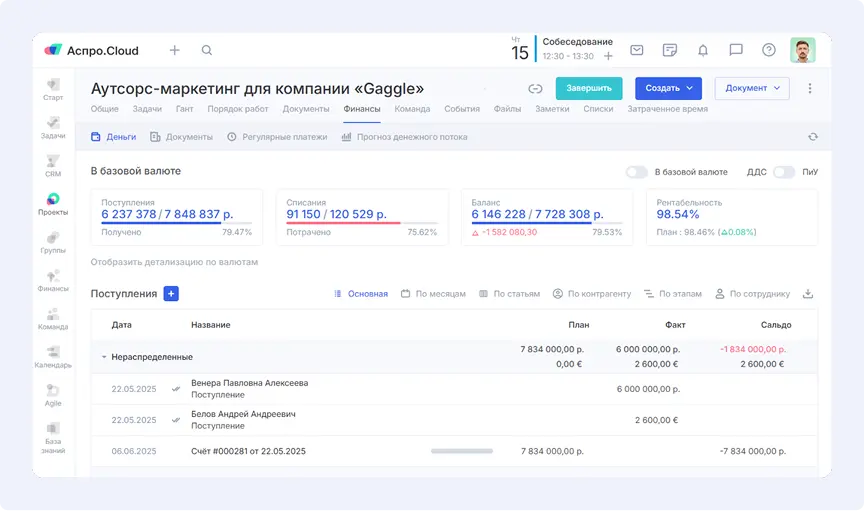 Чтобы избежать этих проблем, компания заранее рассчитывает бюджет проекта и регулярно следит за его исполнением. Важно использовать инструменты учета и планирования, которые показывают финансовую картину по каждому проекту.